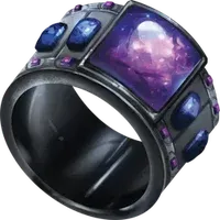 Norik recupera l’anello dalla sabbia e lo rigira tra le dita. Metallo meteorico, scuro, freddo al tatto. Le pietre incastonate nella fascia hanno qualcosa di strano — non riflettono la luce, la contengono. Guardandole da vicino sembrano avere delle nebulose al loro interno, minuscole e lentissime, come se qualcuno avesse intrappolato frammenti di cielo notturno dentro il metallo.