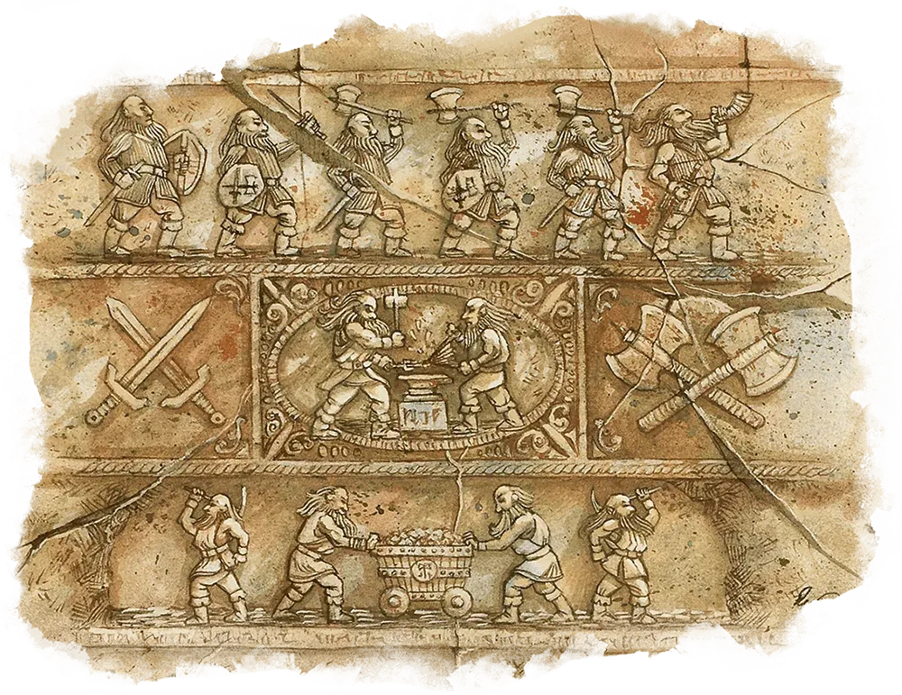 Un tempo goblin, Yek è stato trasformato in umano da un diadema magico che ora ne sostiene il dominio. I bassorilievi nanici che decoravano le sale sono stati scalpellati e sostituiti da volti goblin, segno di un potere recente e ostentato.