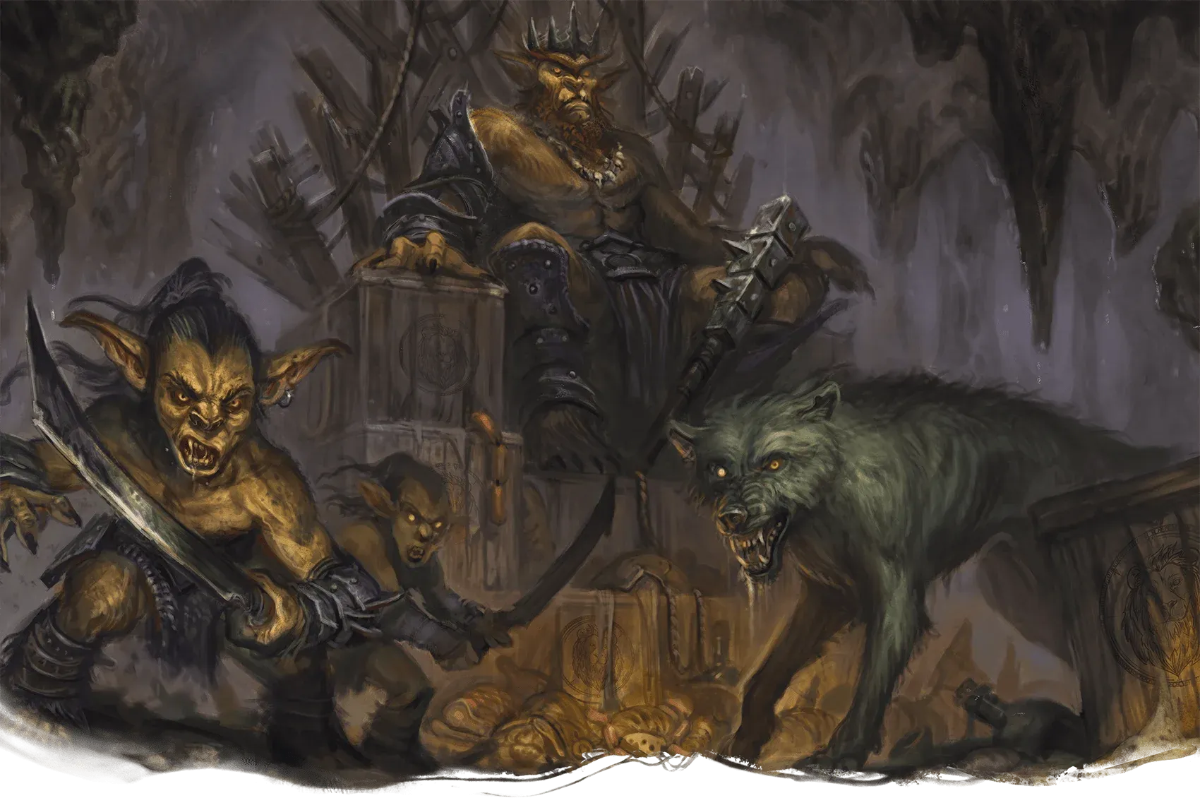 Le tracce conducono verso una serie di colline boscose. Dopo alcune ore, gli avventurieri individuano l’ingresso di una caverna nascosta, sorvegliata da una vedetta goblin.