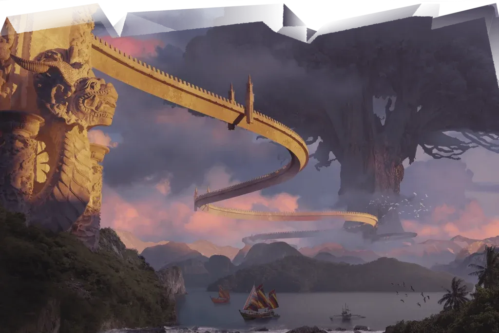 Segni distintivi Ponti sospesi intrecciati con ossa di bakunawa, terre corrotte a Lambakluha, e una cultura in cui canto e ricordo sostituiscono l’archivio.