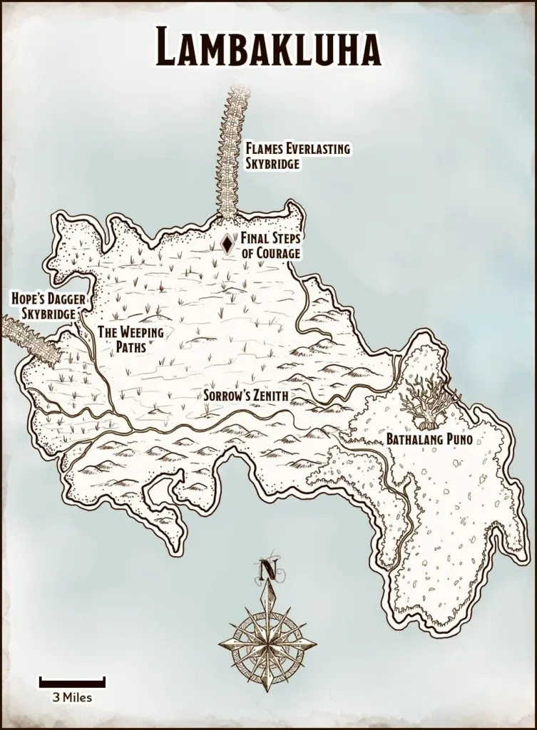 Raccontano che Pangil ng Buwan viveva sull’isola sacra di Lambakluha, presso l’albero-tempio Bathalang Puno, bruciato secoli fa dagli invasori. Da allora l’isola è infestata da spiriti tormentati e da vesciche di spiriti, escrescenze innaturali che avvelenano la terra.