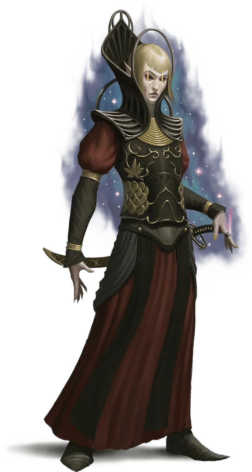 Il drago atterra sul ponte della Second Wind con la delicatezza di chi sa esattamente quanto pesa e quanto può permettersi di distruggere. Il cavaliere alza la visiera rivelando il volto austero di una githyanki — pelle giallastra, lineamenti affilati come quelli di Kae’ryn ma più vecchi, più duri, segnati da cicatrici sottili che sembrano tatuaggi e tatuaggi che sembrano cicatrici.