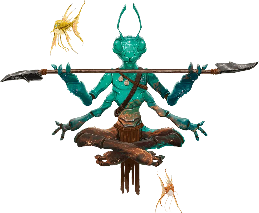 Resta Takana. La thri-kreen mistica vuole uno spelljamming helm e scorte alimentari. Il gruppo ha l’helm della Last Breath e provviste sufficienti — cedono il primo e una parte delle seconde. I thri-kreen sono dentro.