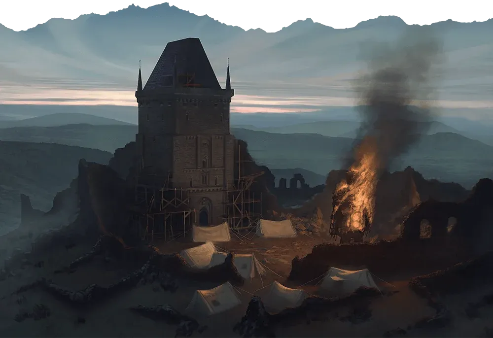 Tra i detriti restano le tracce di un incantesimo interrotto: candele consumate, cerchi bruciati, simboli di fuoco. Il Culto della Fiamma Eterna aveva tentato di risvegliare i morti del cimitero per trasformarli in un esercito di fiamme.