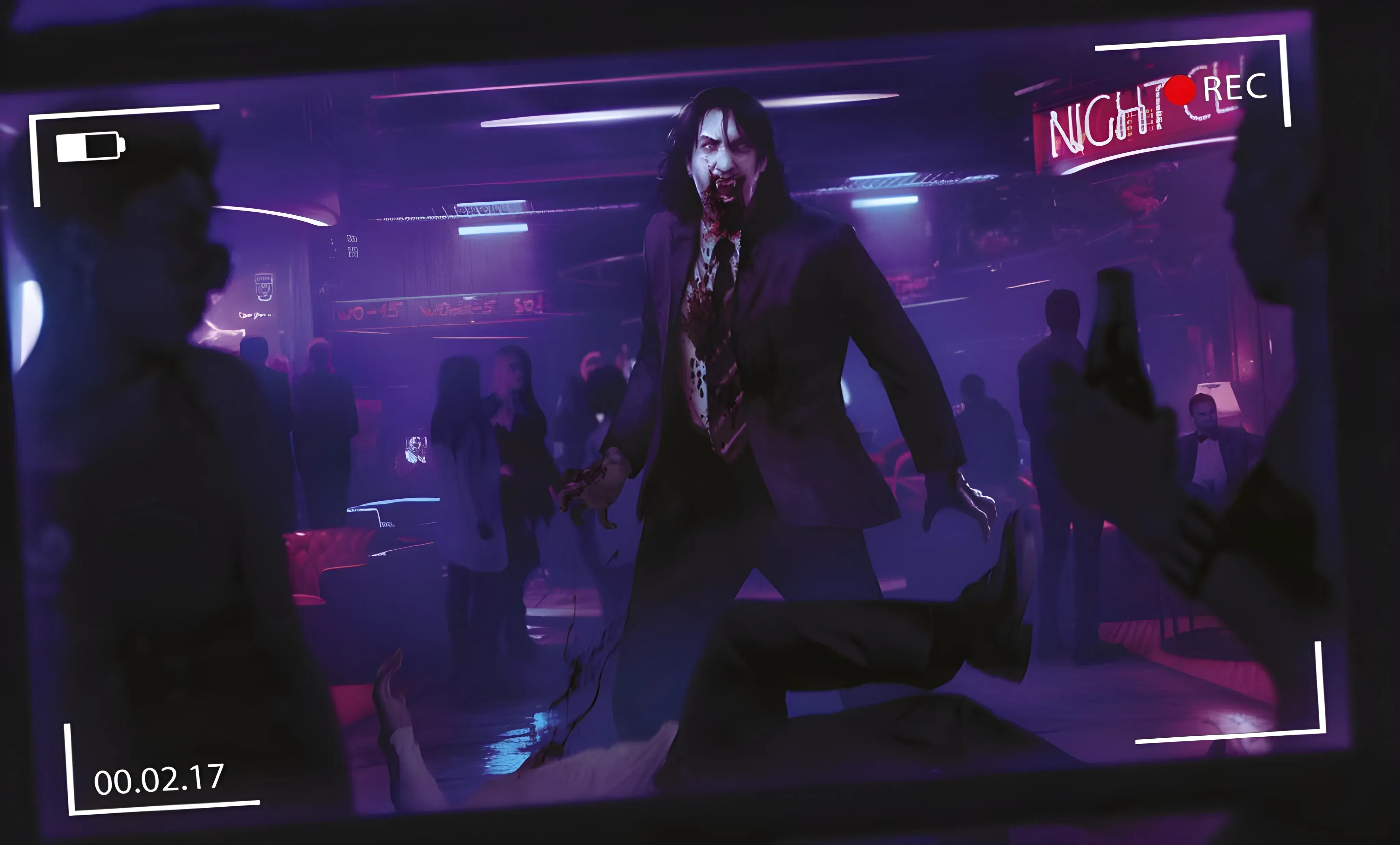 Un’ombra balza dalla massa su uno dei malcapitati in fuga — troppo veloce per essere umana. L’uomo finisce a terra. L’ombra gli è addosso. Dura pochi secondi. Quando si rialza, quello sotto non si muove più.