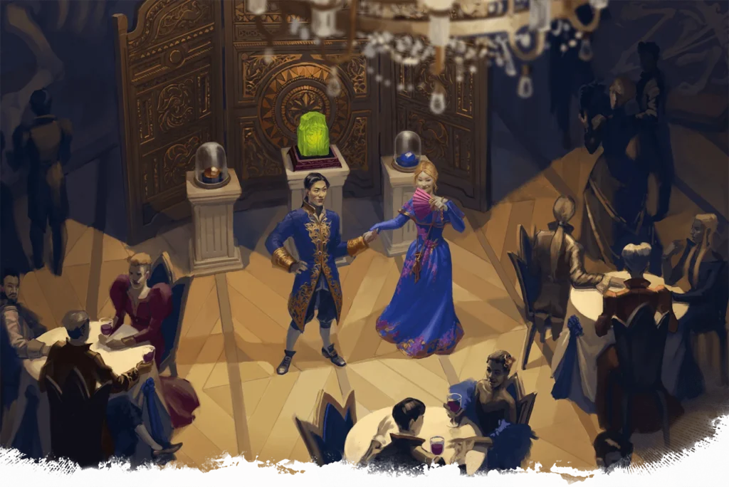 All’interno, al banco informazioni, un draconide accoglie il gruppo. Un halfling si avvicina in silenzio e consegna una pergamena. Alla lettura del nome di Cassee Dannell, l’atteggiamento del personale cambia: la studiosa non è più ospite gradita, e le guardie vengono allertate.