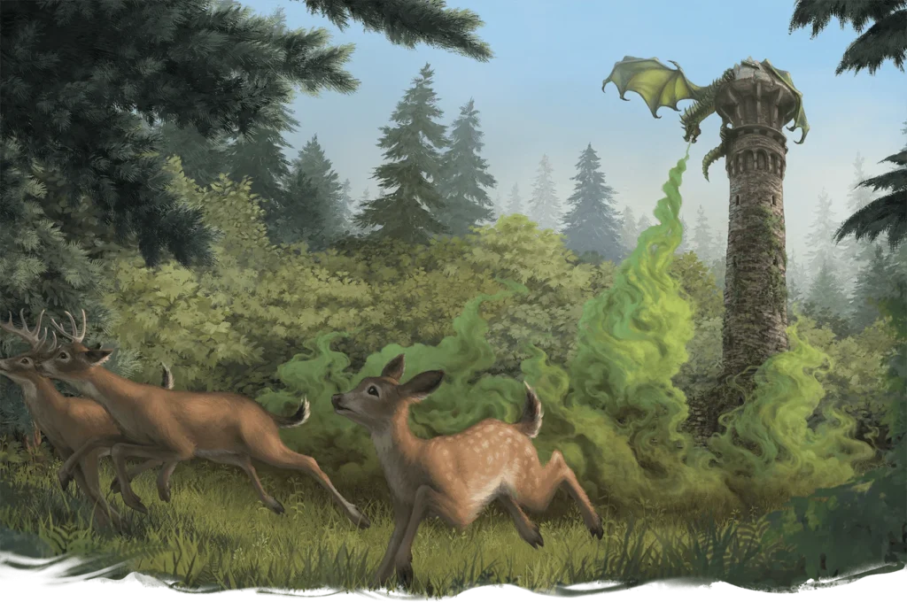 Il gruppo prepara un’imboscata. Il drago viene colto di sorpresa; nonostante un soffio velenoso che mette a terra uno degli avventurieri, la creatura viene uccisa.