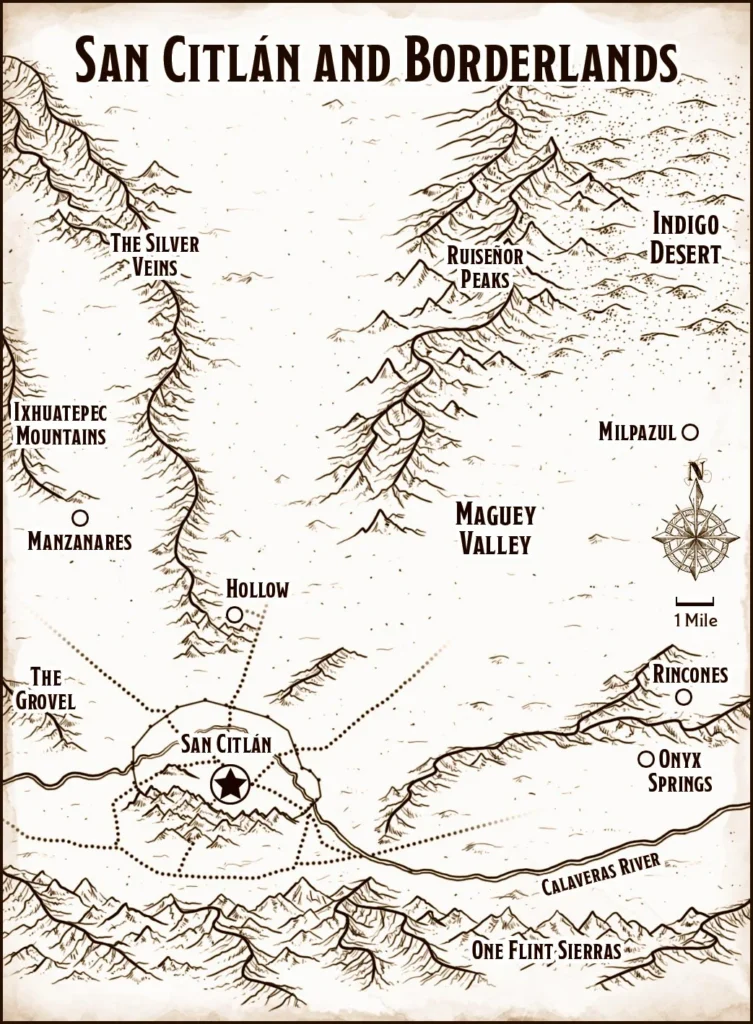 San Citlán vive in equilibrio tra memoria e superstizione. Altari, maschere e processioni scandiscono il ritmo sociale. Il Trecena, consiglio cittadino, unisce potere politico e influenza spirituale.
