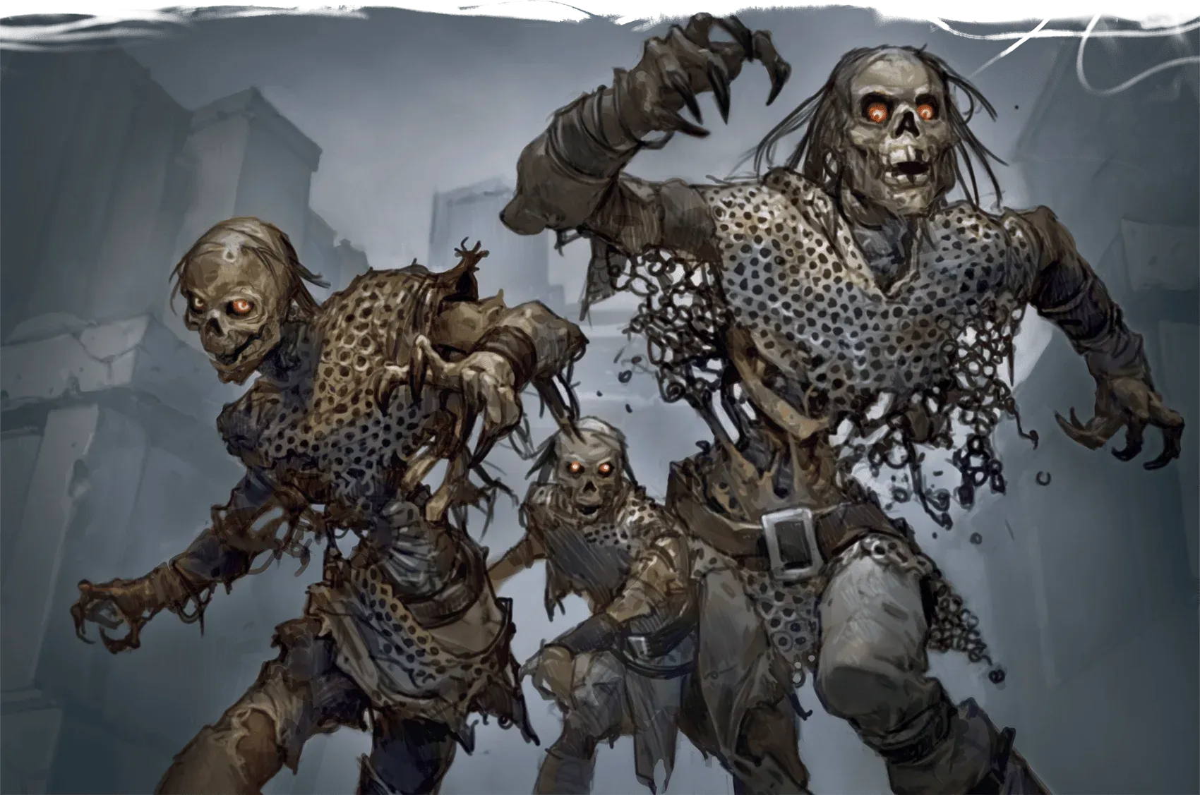 Attraverso il passaggio nascosto, gli avventurieri accedono ai sotterranei del maniero. L’ambiente è umido e instabile: vecchie cripte, corridoi crollati e stanze riadattate come rifugi dalla banda.