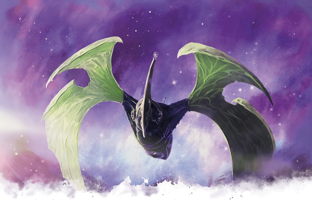 La Moondancer rallenta mentre un’altra nave compare a poppa. Ha la forma di una gigantesca falena, con ali di cristallo iridescente dello stesso colore delle radici che hanno devastato il loro mondo. Sul ponte avversario si intravedono figure che si affrettano ad armare un mangano.